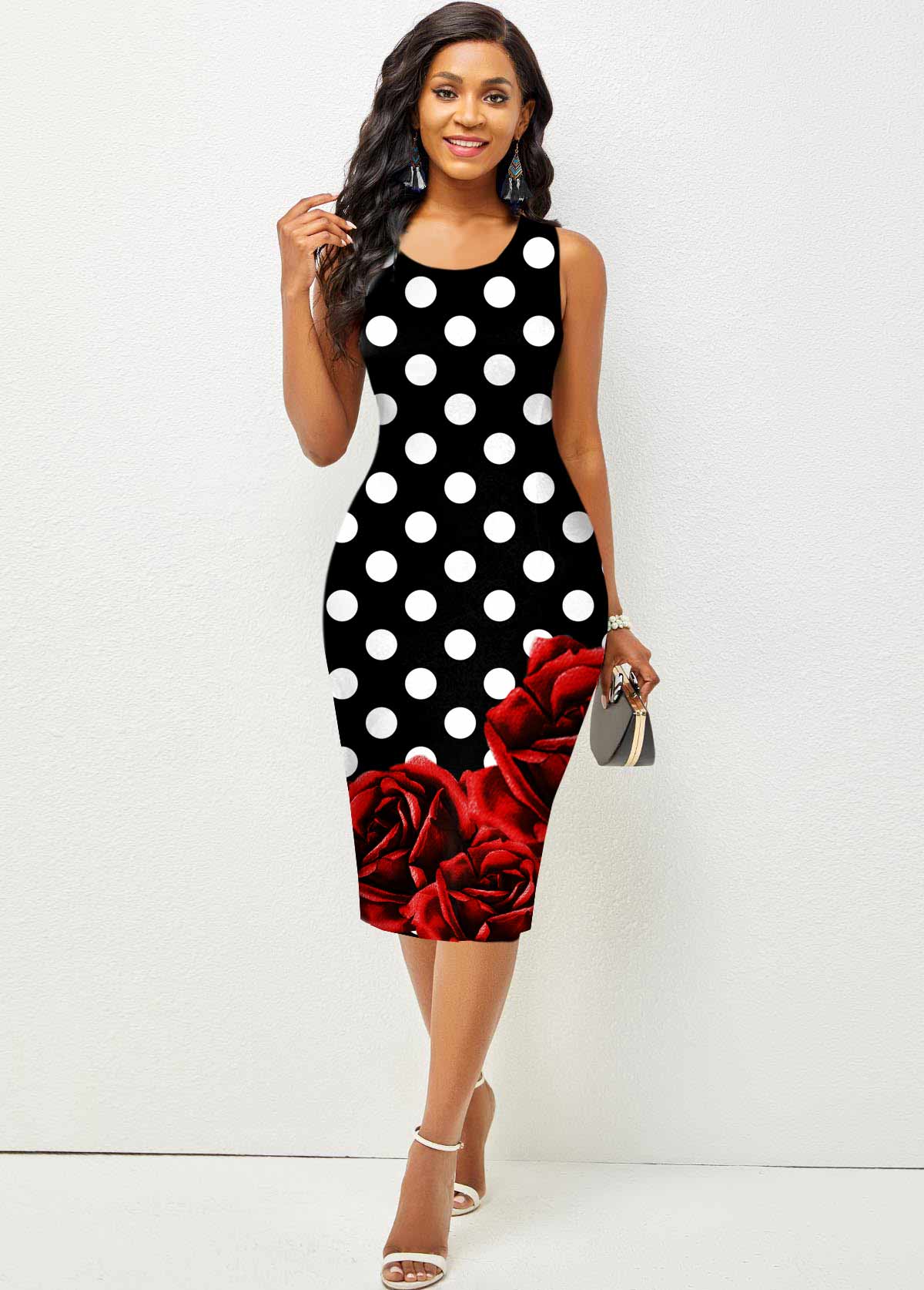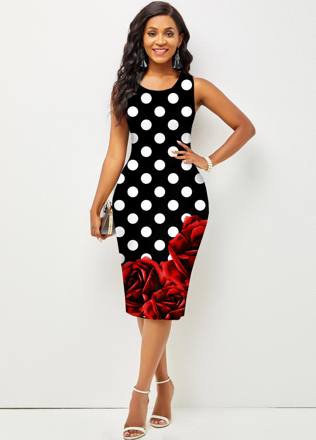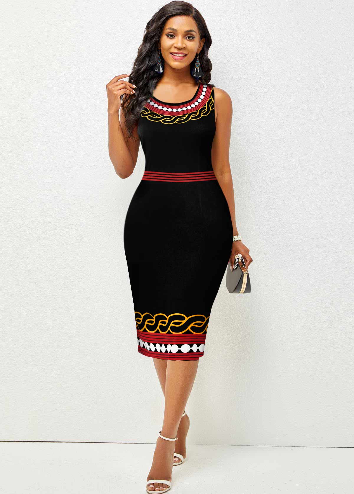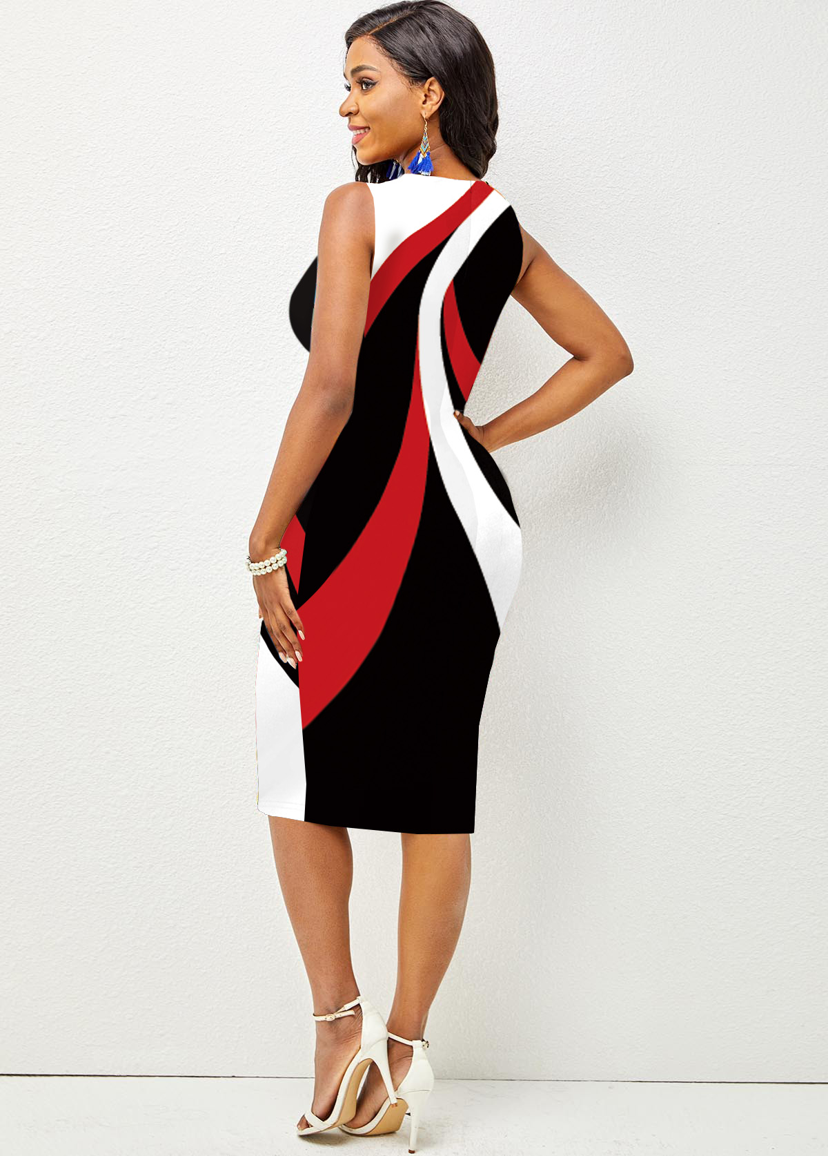 • Contrast Printed Sleeveless Round Neck Bodycon Dress