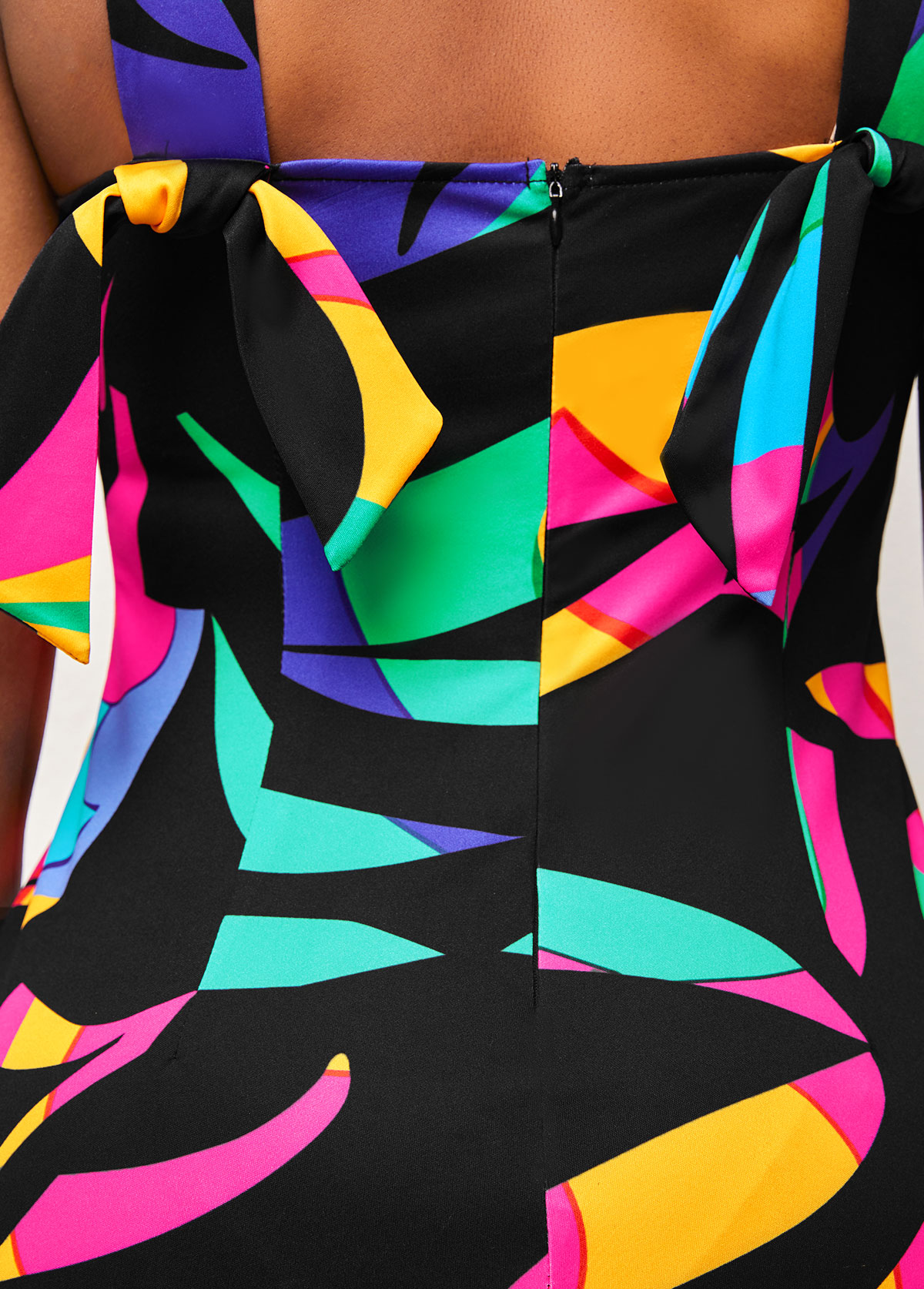 • Cross Halter Tie Back Multi Color Dress