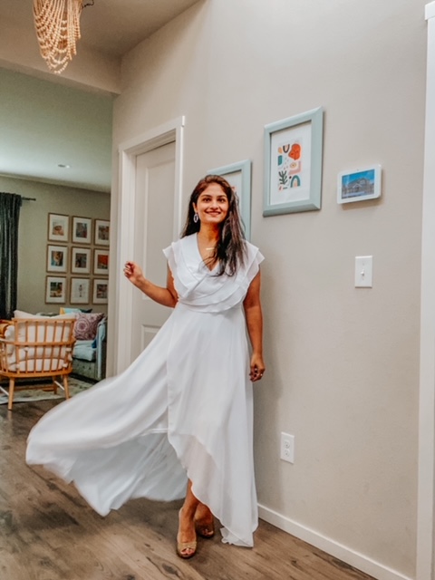 Flounce Asymmetric Hem V Neck Maxi Dress