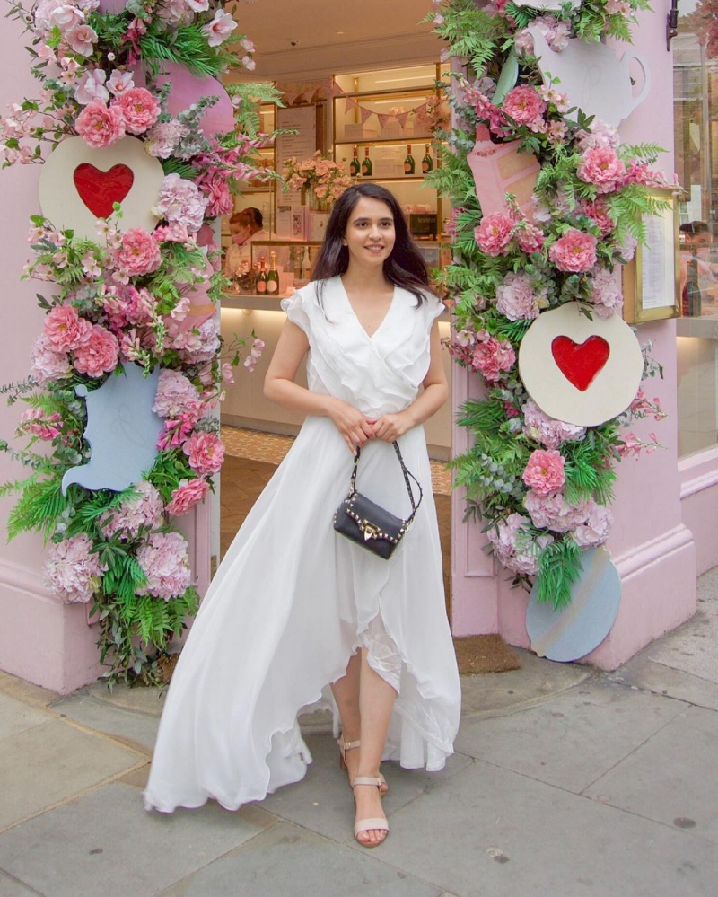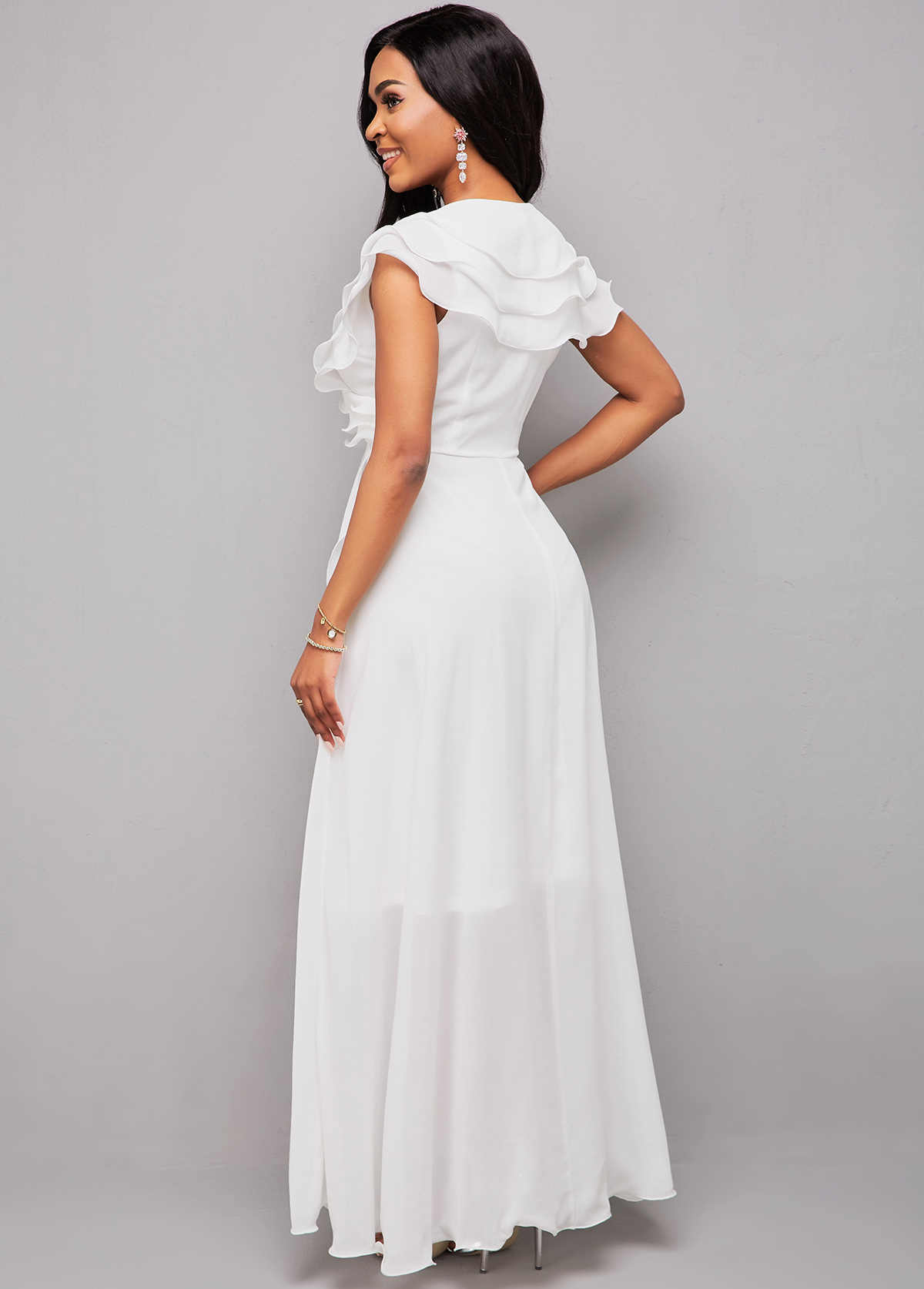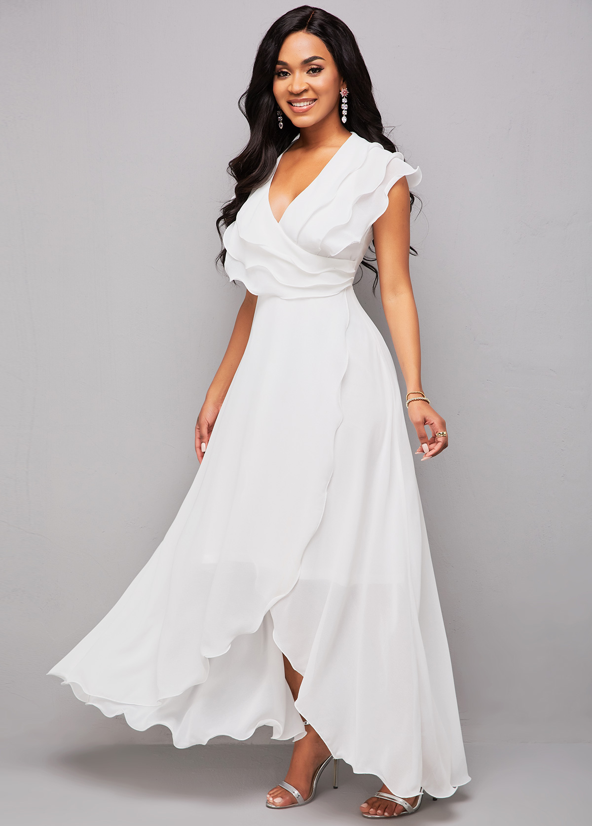 • Flounce Asymmetric Hem V Neck Maxi Dress