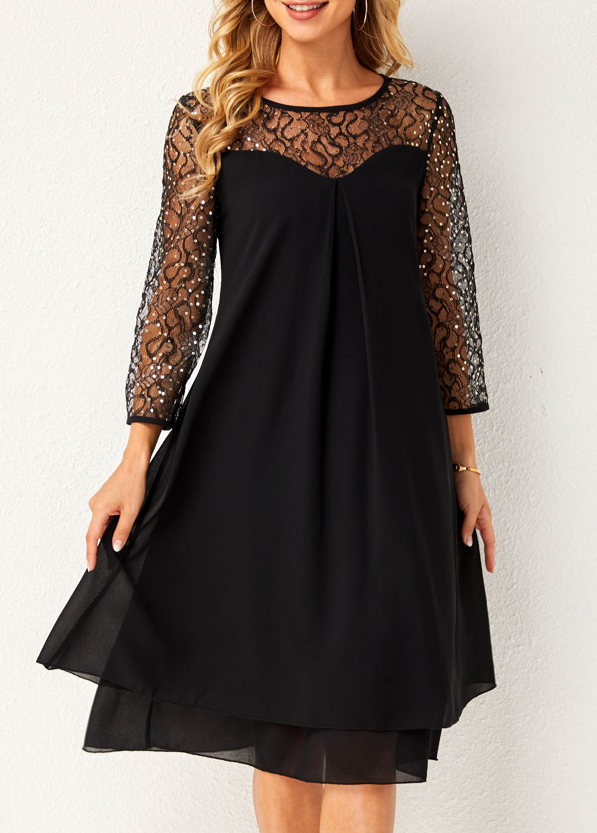 • Lace Stitching Sequin Dress
