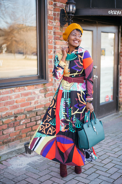 Printed Button Up Long Sleeve Turndown Collar Dress