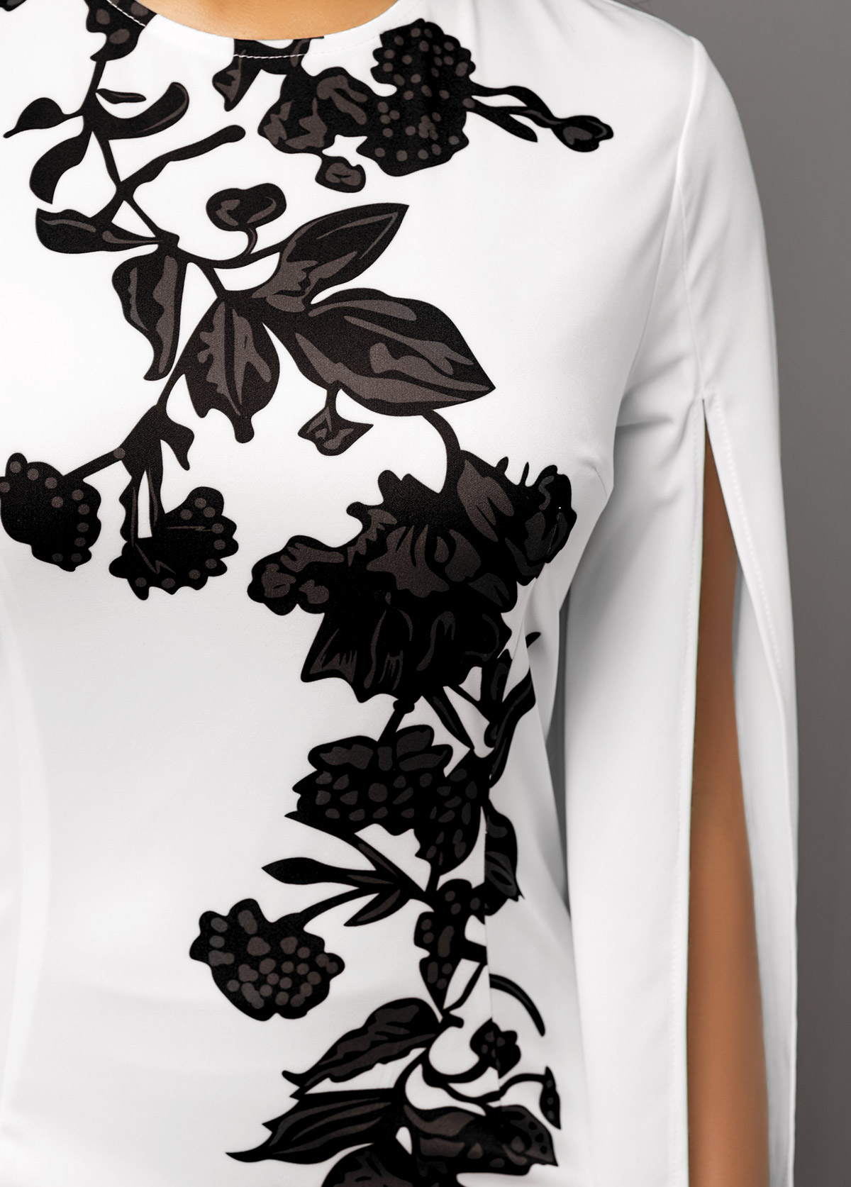 • Round neck dress with floral print and cape sleeve