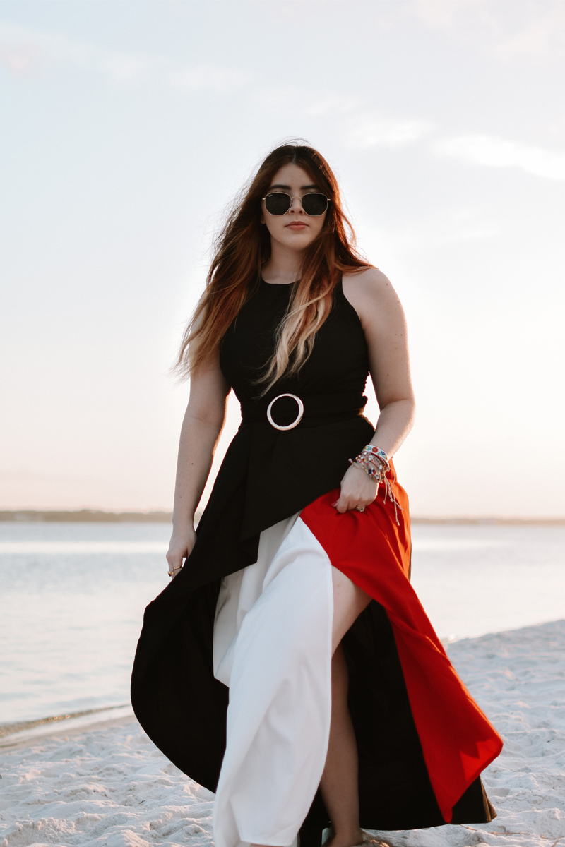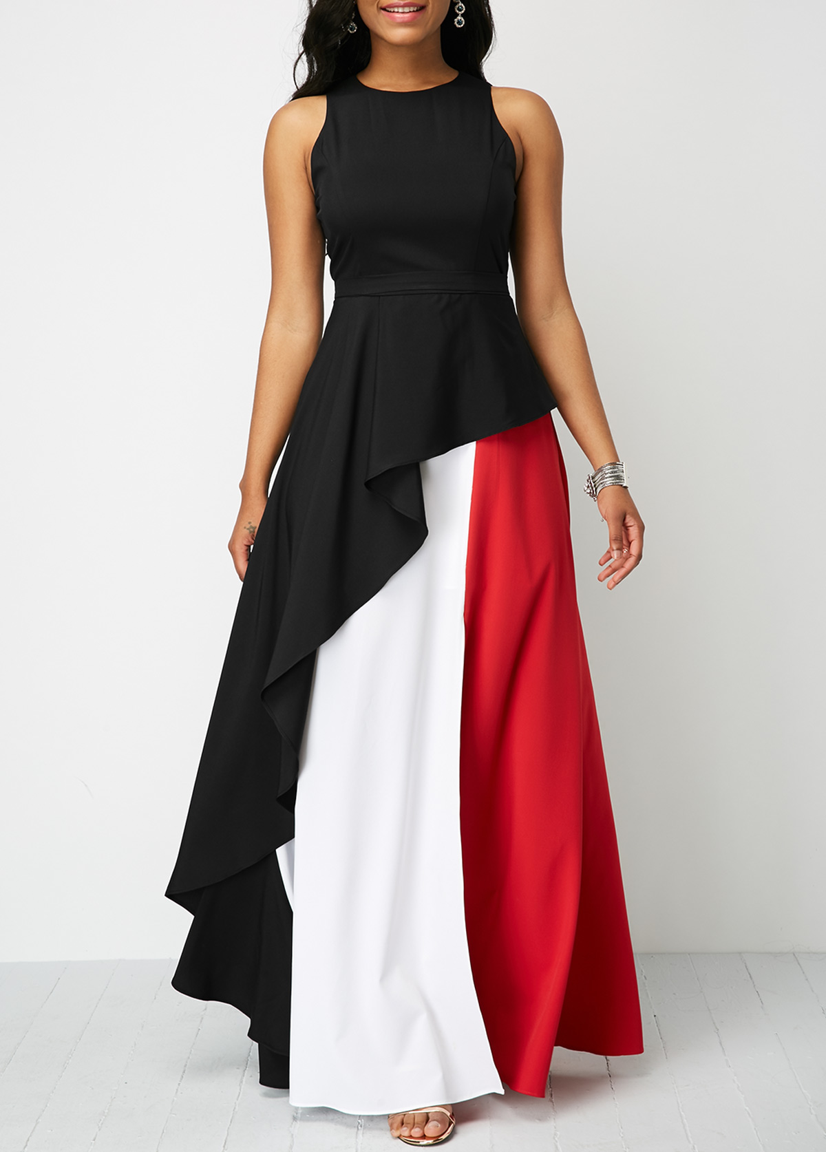 • Round Neck Front Slit Sleeveless Maxi Dress