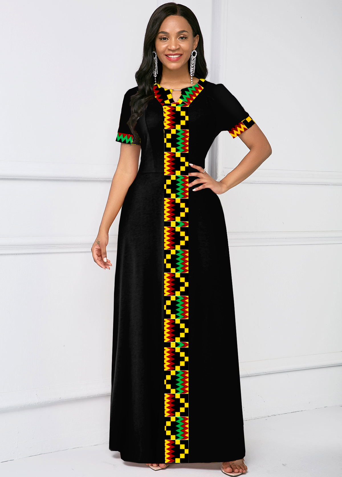 Short Sleeve Tribal Print Keyhole Neck Dress