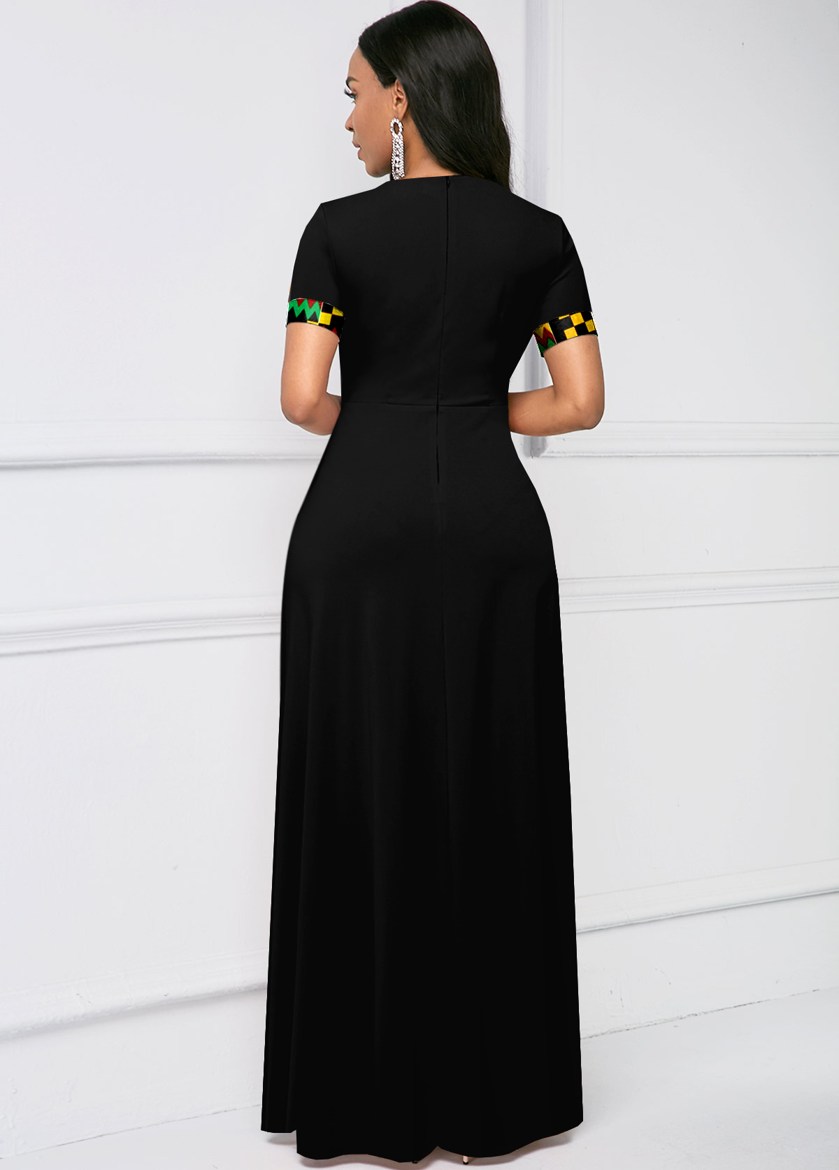 • Short Sleeve Tribal Print Keyhole Neck Dress