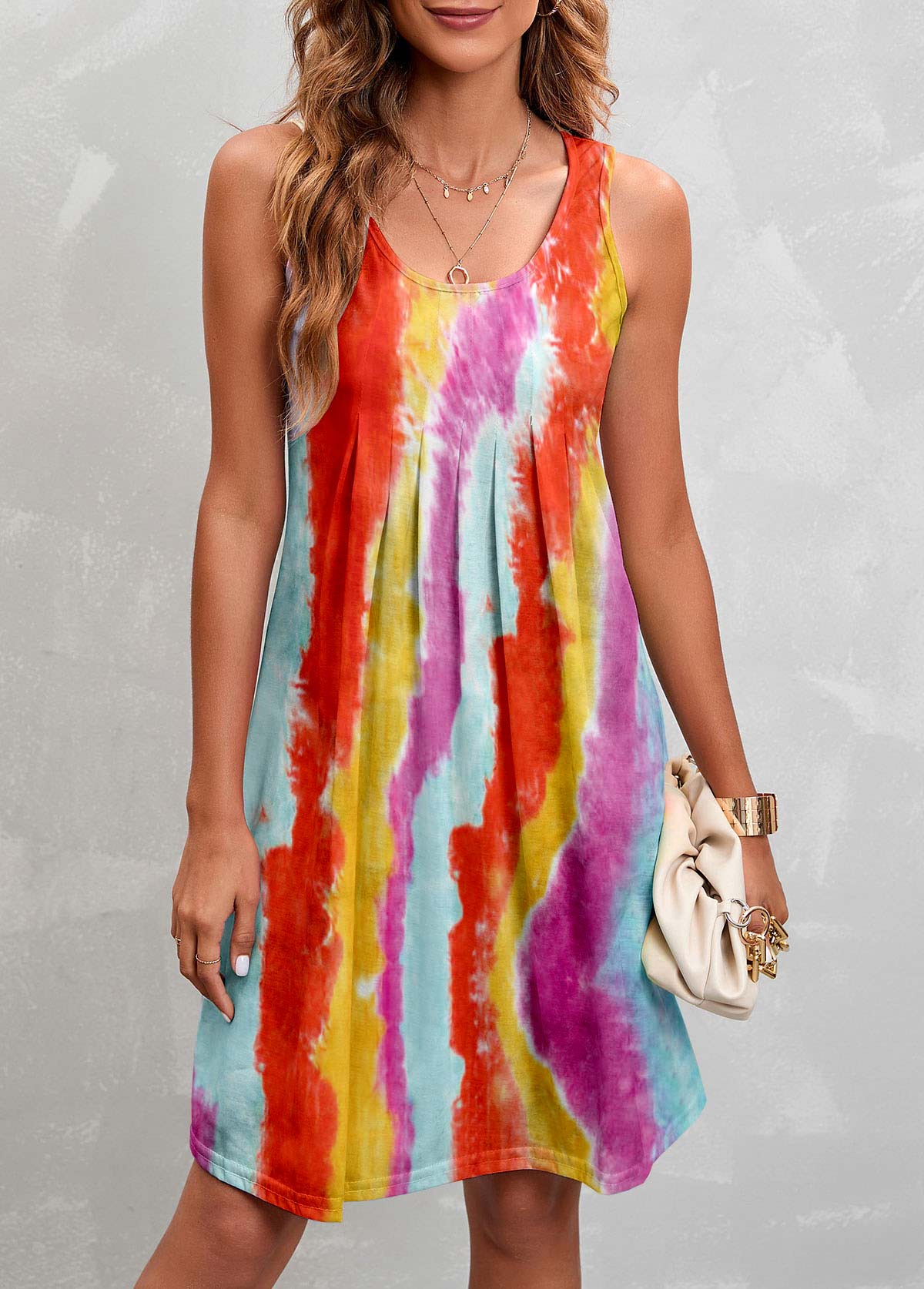 • Sleeveless Round Neck Pleated Design Dress