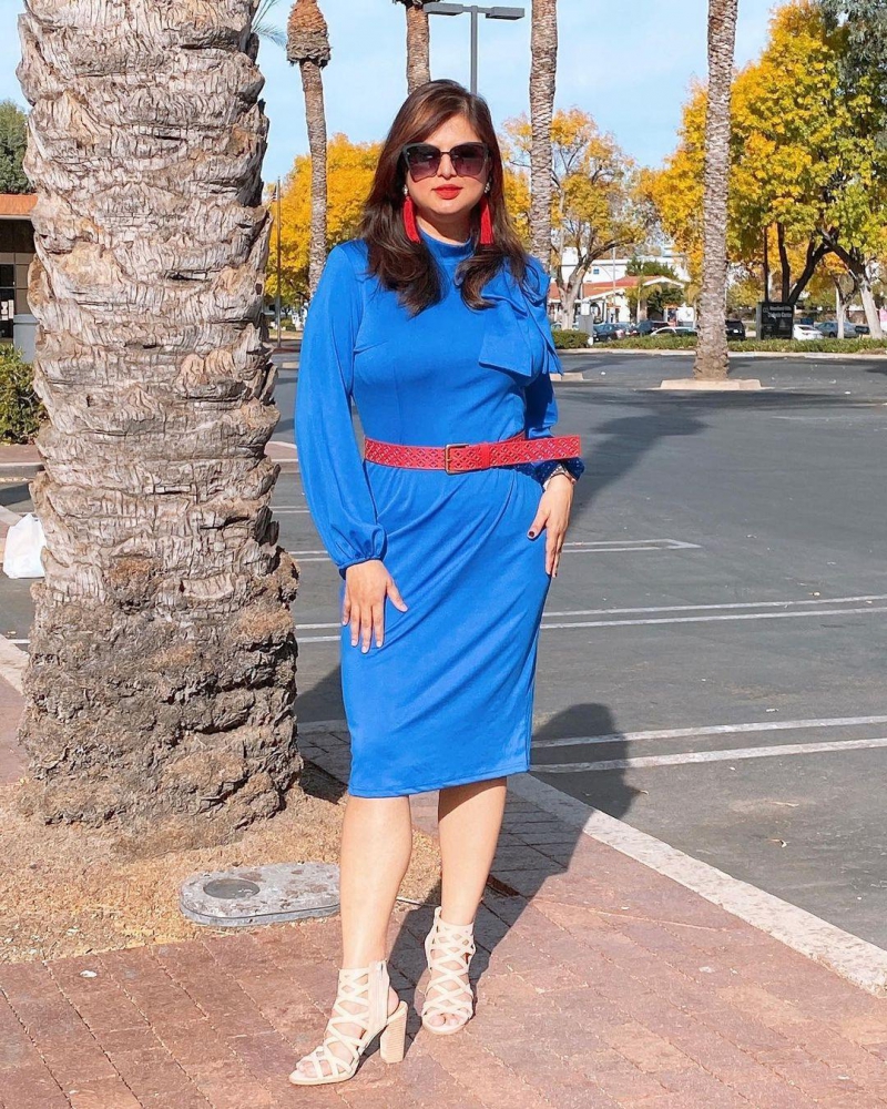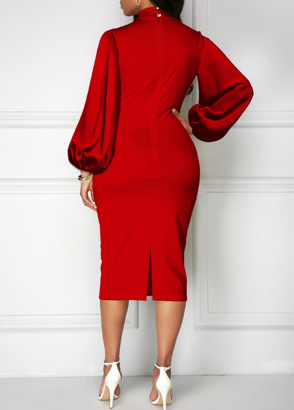 • Solid Bowknot Lantern Sleeve Sheath Dress