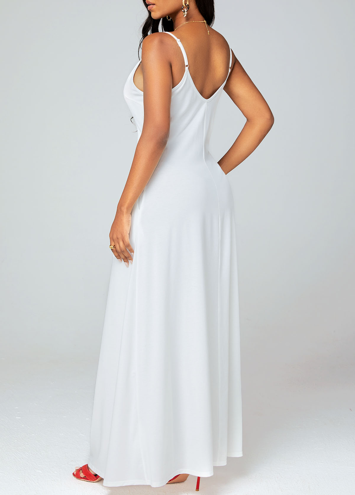 • Spaghetti Strap Floral Print Double Pockets Maxi Dress