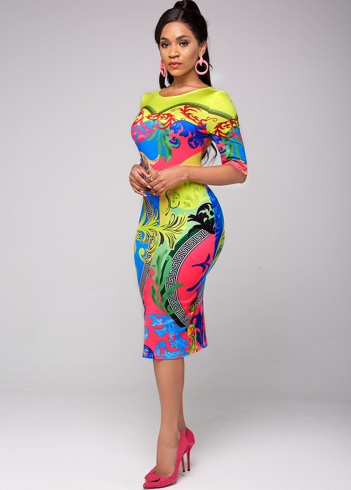 Polka Dot Sleeveless Round Neck Bodycon Dress