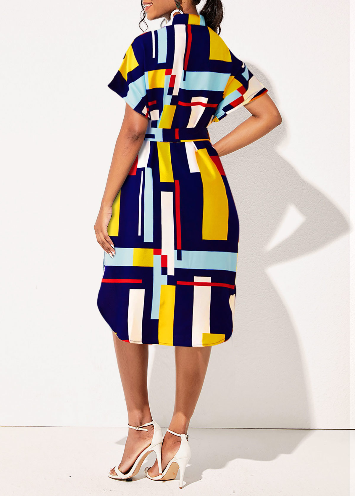 Short Sleeve Round Neck Checkerboard Pattern Mermaid Dress